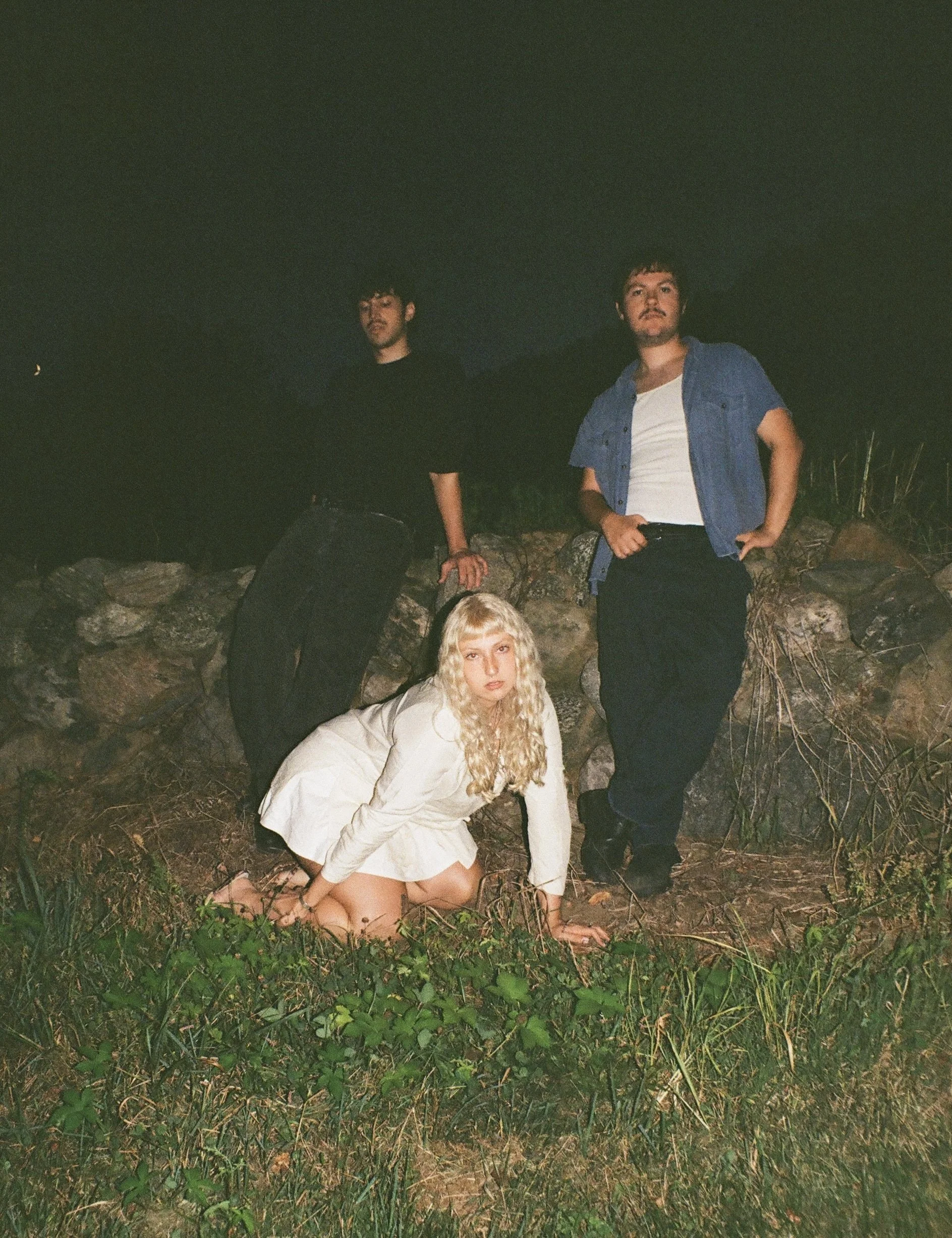 I write the lyrics and chords of it alone and then I bring it to Michael and Christian to make it real. Christian likes to be there and react to what I'm doing, and Michael likes to listen to the demos and come up with parts that way. We have rehearsals with our friends Rowan Martin or Mena Lemos to come up with guitar parts, then we go to Ashlawn Farm to record. At its core, Trophy Wife is the 3 of us with all of our separate influences, but it's also very much a collaborative effort with all the people we've met through music.
